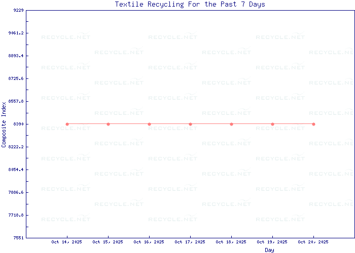The Textile Recycling Composite Index tracks the changing market prices in the textile recycling industry . The Index consists of a weighted basket of specific benchmark grades of recovered natural textile fibers, scrap synthetic textiles and used apparel items. The Index includes snapshots of 5 viewpoints of market trends : the past 7 days, past 30 days, past 90 days, past 1 year and past 2 years.
